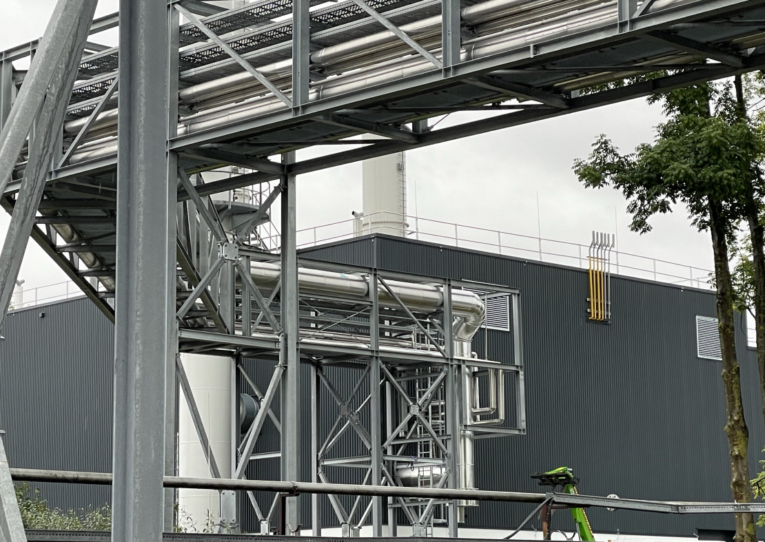 Die Lieferung und Montage der neuen Rohrbrückenkonstruktion wurde durch Antrok – einschließlich der Vorfertigung der Energietrasse am Standort Lohfelden – erfolgreich durchgeführt. Die Rohrbrücke, mit einem Stahlgewicht von über 200 Tonnen, einer Länge von 300 Metern und einer maximalen Höhe von 9,5 Metern, dient als Trägersystem für mehrere Medienleitungen, die vom alten zum neuen Gasturbinenkraftwerk führen. In diesem wurden drei Kessel und zwei Gasturbinen verrohrt. Durch diese Maßnahme ist unser Kunde nun in der Lage, den gesamten Energiebedarf seiner Produktion eigenständig zu decken.