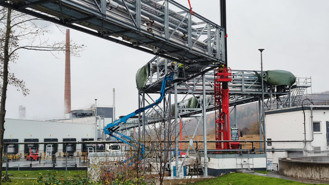 Zunächst erfolgte die Montage der Stützen vor Ort, deren Längen bis zu 8 Meter und Gewichte bis zu 4,6 Tonnen betragen. Die dazugehörige Rohrbrücke, bestehend aus Brückensegmenten mit einer Länge von 15 Metern und einem Gesamtgewicht von etwa 20 Tonnen, wird auf diesen Stützen installiert. In den Brückenteilen sind alle erforderlichen Rohrleitungen, Isolierungen und Rohrleitungen bereits integriert.